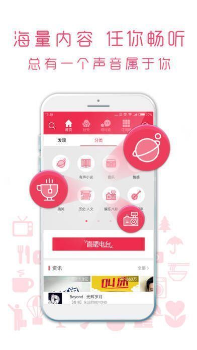 多元丰富:拥有海量音频储备,整合20大类音频内容,满足你的各种收听需求!