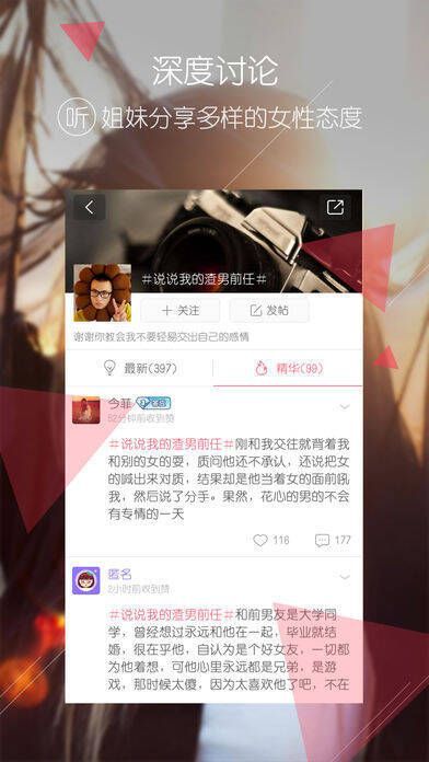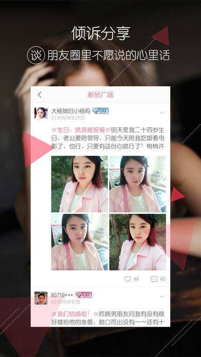 【女性社区,姐妹尽情畅聊】无论是情感心事还是日常生活,不管是人生大事还是琐碎小事,开心或不开心,都能和姐妹们互动交流。比如老公不给力怎么办、闺蜜抢男友如何应对、减肥困难怎么解决,加入美荔,这些问题都能找到办法。