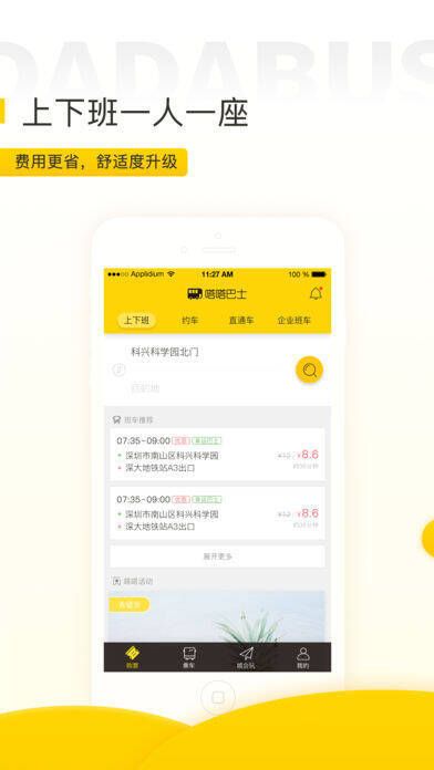 【舒适上下班】为全国5亿白领解决上下班的出行难题。嗒嗒巴士以地铁票价提供专车服务,目前已在包括北京、上海、广州、深圳、南京、厦门、西安、成都等30多个一二线热门城市开通了3000多条上下班直达线路。