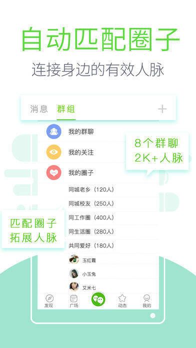 突破熟人圈子,网聚1.5度人脉,涵盖劳务圈、兴趣圈、商务圈等各种社交圈子。