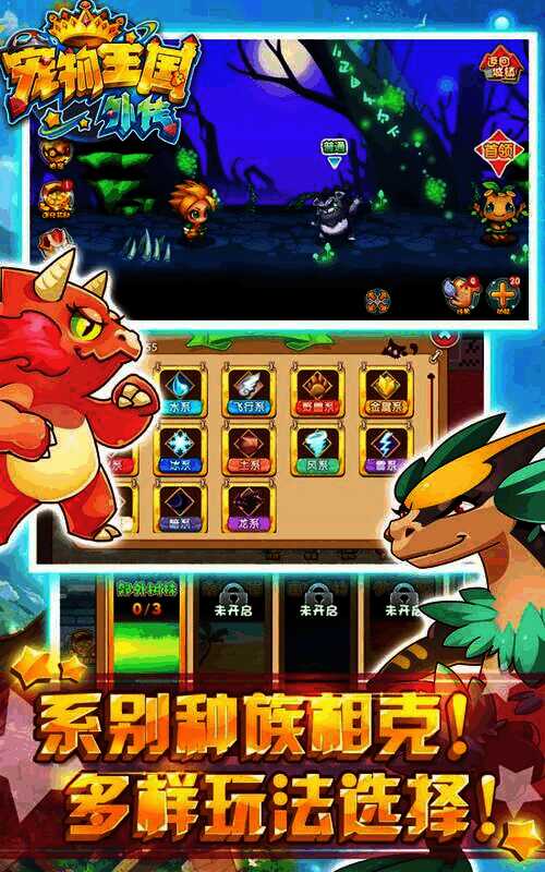 3、宠物超绝进化,激发极限战力,系别种族相克,玩法多样。