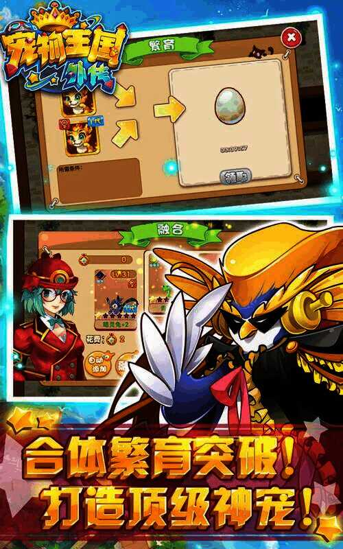 《宠物王国外传》金秋再临!这是一款经典的宠物回合制RPG手游,有数百种超Q萌宠等你收集。超大探险地图多达数百关,怀旧战斗模式让你热血沸腾。宠物技能可自由切换搭配,通过捕捉、孵化、进化、突破、融合、合体及繁育等多种系统,培养出专属于你的最强神兽!无限可能,尽在《宠物王国外传》!上吧!就决定是你了!