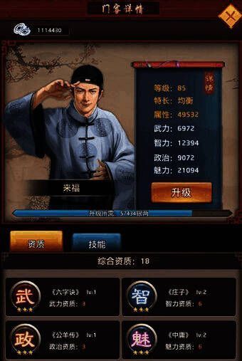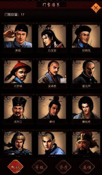 2、数十位朝中知名之士登场,多种升级方式提升门客属性。
