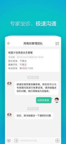 4、可咨询全国公立三甲医院医生,享受7×14小时健康资讯服务。用户在糖尿病饮食、运动、治疗等方面的任何问题都能咨询医生。