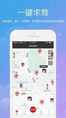 辰邦急救 app 是生活医疗服务平台,主要应对突发状况。只需点击屏幕并长按三秒就能发送求救信息,志愿者与急救医生可通过定位快速到达现场,还会自动建立电子档案,为用户健康护航。