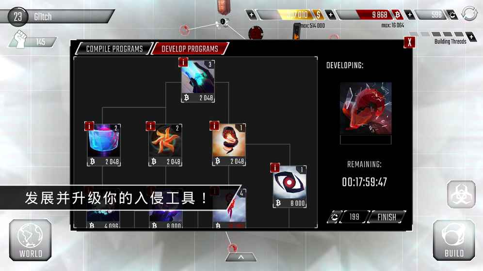 4、入侵世界各地其他玩家的网络,开发并升级你的黑客工具。