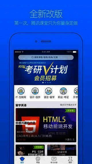 3、作为腾讯推出的专业在线教育平台,致力于打破中国教育资源地域分布的不平衡。聚合了大量优质教育机构和名师,设有 IT 互联网、设计创作、语言学习、职业考证、升学考试、生活兴趣等众多在线学习精品课程,提供一站式全方位的专业教育服务。