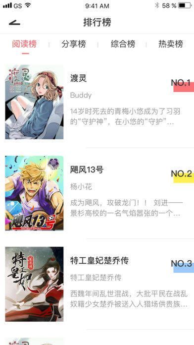 3、采用个性分类,有题材、精选和作者 3 种分类方式,个性化推荐满足漫迷需求;智能搜索引擎,海量关键词引导,不错过好漫画。
