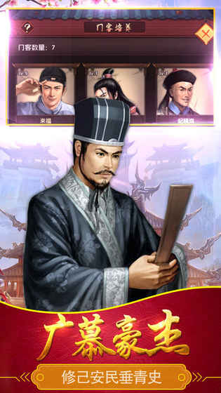 良禽择木而栖,贤臣择主而事。门客系统能让你招纳千古有名之士,他们可为你出谋划策、南征北战。通过书院进修,门客还能不断提升,成为你争霸天下的重要助力。