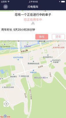 1. 地图界面直观呈现服务状态与营业网点,可通过手指拖放地图移动用车地址;