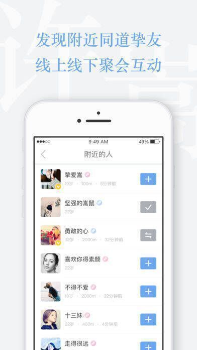 4、用户在发现页面能查看“附近的人”,结交身边好友、发现群组;点击商城,可查看、购买或以积分兑换相关周边产品。