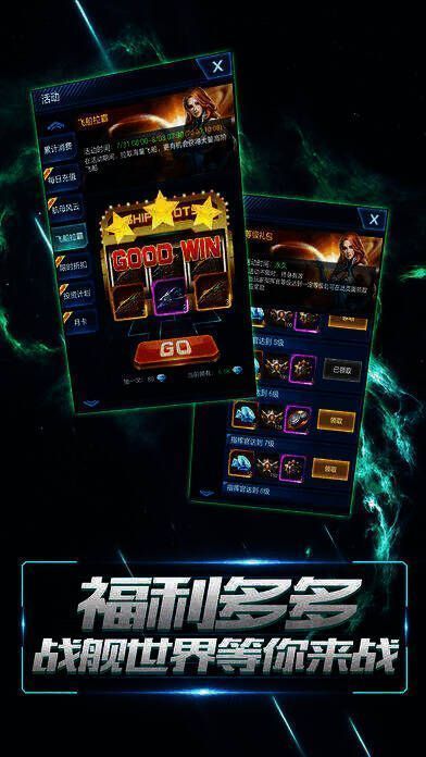 1、大型多人在线PVP战争:具备极致3D精细画面,让玩家感受真实热血的星际世界。玩家可组建并搭配星际战队,率领战舰碾碎敌军。