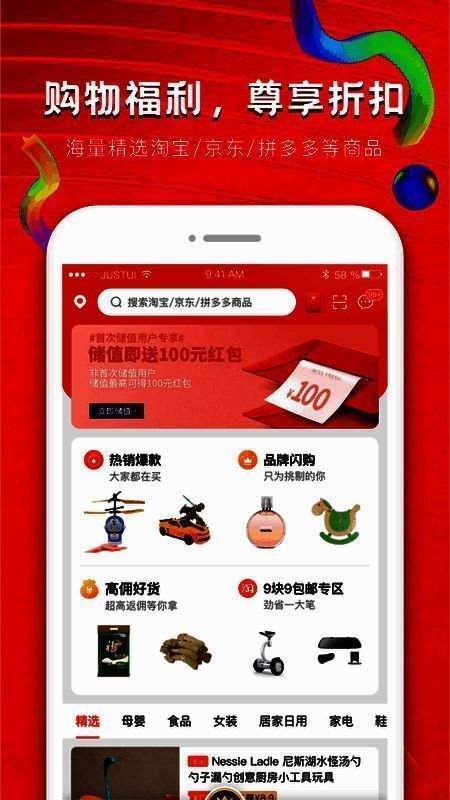 3、九块九包邮等超值商品等您抢购,网购享受折上折。