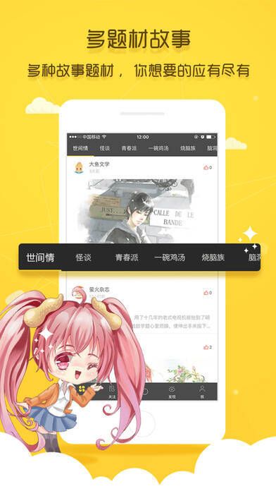 1、精选:没时间扫文?软件根据你的口味推荐精品小说,和文荒说拜拜。2、关注:可订阅喜欢的标签或作者,不错过任何动态。3、发现:故事接龙玩法,让脑洞无限延伸,各种高能玩法等你挑战。4、写作:别干蹲,自己创作!标签和选题提供灵感,单篇、连载自由创作。