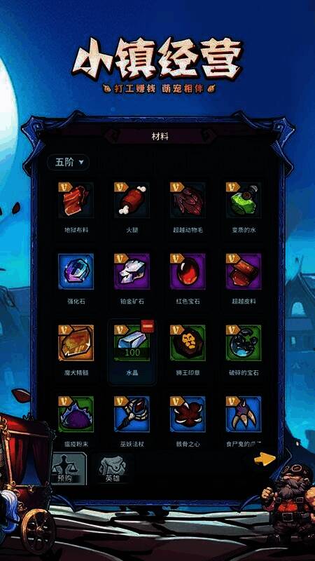 4、在小镇为英雄打造住所,赚取足够金币,通过兑换回收魔法物品掉落的材料制作神装,刺激英雄“消费”来提升自身实力。小镇发展越好,英雄也会变得更强!