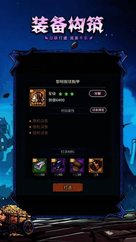 4、【装备自主打造】游戏中有海量图纸和多样词条,玩家完全能为英雄打造专属装备,还能“收割”英雄们的金币!