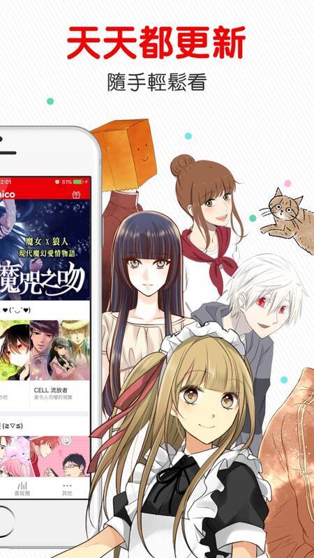 1、专为手机打造全彩漫画,色彩丰富,让帅哥美女、正太萝莉形象更鲜活,长条漫画单指滑动即可轻松追更。