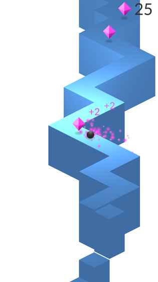 《疾行转弯:ZigZag》是一款相当不错的休闲游戏,它能充分考验玩家的反应能力和操作能力,说不定还会让你觉得手指都不够用。游戏操作很简单,通过手指点击方向,控制小黑球一次次急转弯,同时在沿途尽可能拾取更多的紫色水晶。