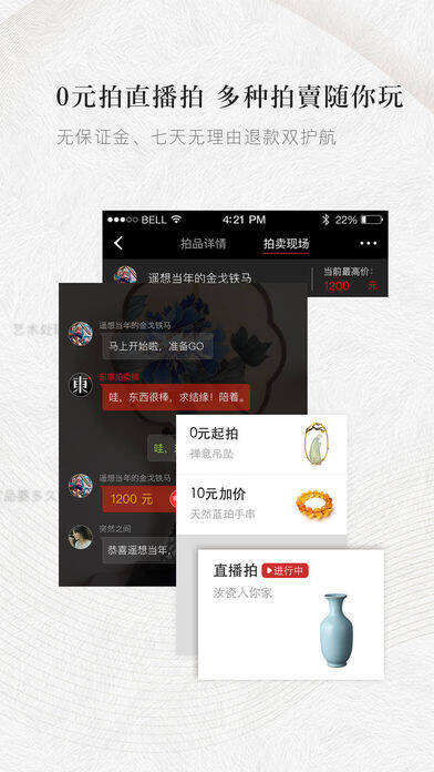 3、拍卖:采用0元趣拍、强互动的创新拍卖模式,专业审核,竞价公开透明,支持七天无理由退款。