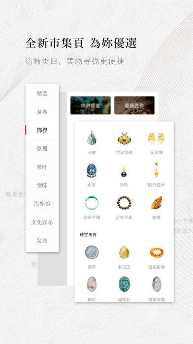 2、作品:涵盖茶器、茶叶、珠宝玉石、家居、文化艺术、古法食品、中式装束、日本器物等,有百万件东家特有孤品,还支持柔性定制。