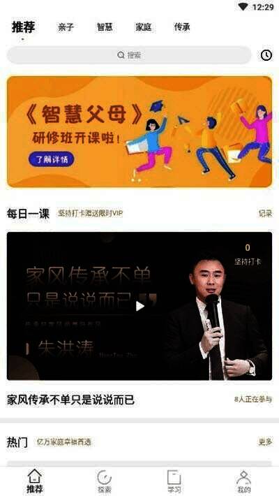 【学习页】:陪伴并记录你的学习历程,见证家庭与事业的成长。