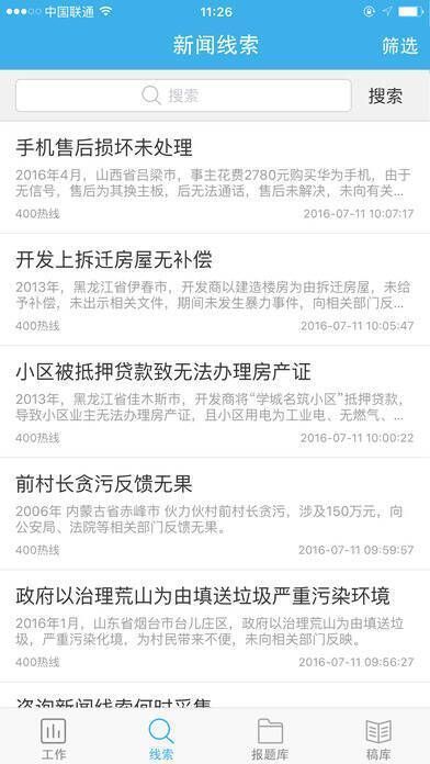 【线索库】汇集了新华社通稿、400热线、互联网热点、应急预警信息及手机爆料等多家信息来源,能即时推送网络热点。