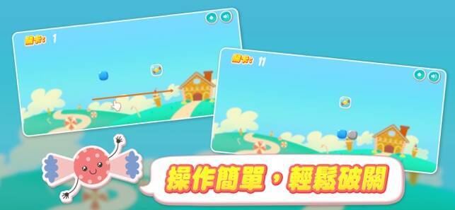 游戏具备真实物理特性,玩家要运用各种方法助小人获取关卡中的糖果。