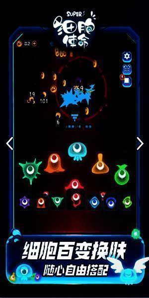 1、拥有各种形态的超萌细胞皮肤,搭配对应的迷你细胞可增强属性,提升战斗实力。