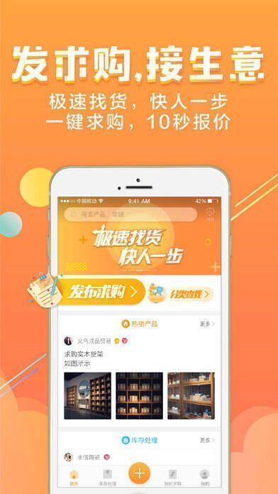 1、发求购,接生意 - 极速找货,领先一步;10秒报价,一键求购。