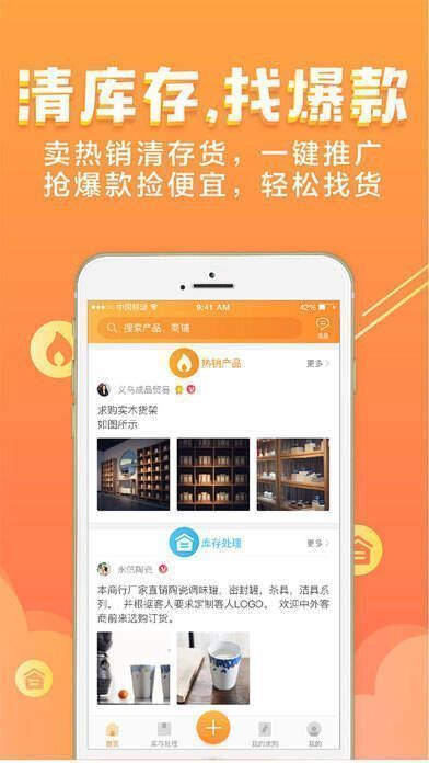 3、清库存,找爆款 - 售卖热销品清理存货,一键推广;抢购爆款,轻松找货。