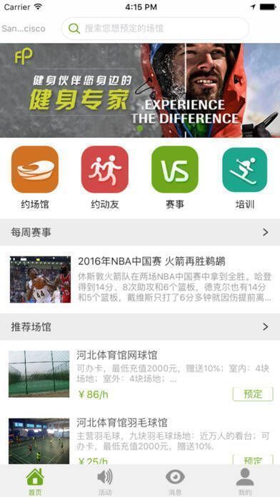 健身伙伴是专注于运动健康垂直领域的综合性运动平台,为运动人群提供在线预订、活动发布、交流以及赛事资讯等服务。让用户体验预订运动场馆的便捷,融入新鲜社交元素,传播积极向上的运动生活理念,让运动更具趣味性。