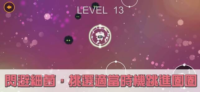 1、经典竖屏街机玩法,带来解压碰撞体验;2、考验手速反应,躲避各类障碍物;3、避开细菌进入白色圈圈;4、魔性闯关道具助你及时闪避障碍。
