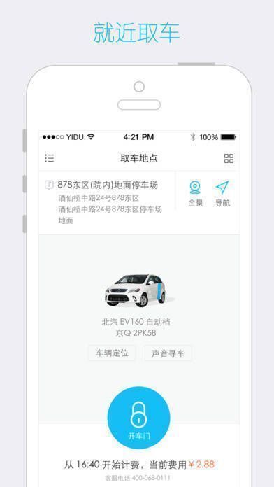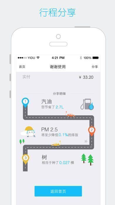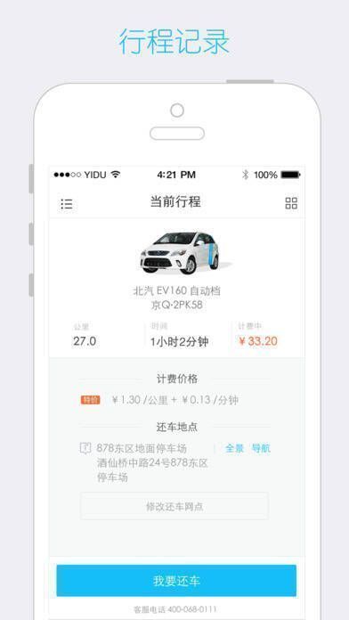 3、作为汽车分时租赁平台,按时间和里程精准计费,利用 APP 可完成租还车所有环节,简单便捷。