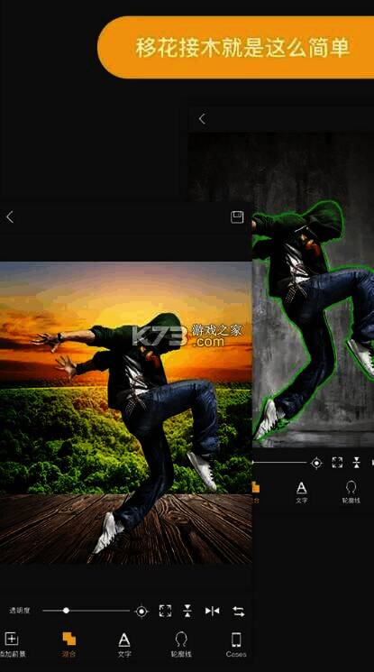 4. 移动、旋转、缩放:可对图像进行移动、旋转、缩放和剪切操作,增强照片合成的灵活性。