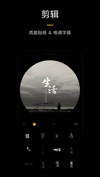 个性字幕:几十种个性字幕式压条,能随意编辑字幕出现的时间段、字体、颜色等,还支持 DIY 搭配字幕模板。