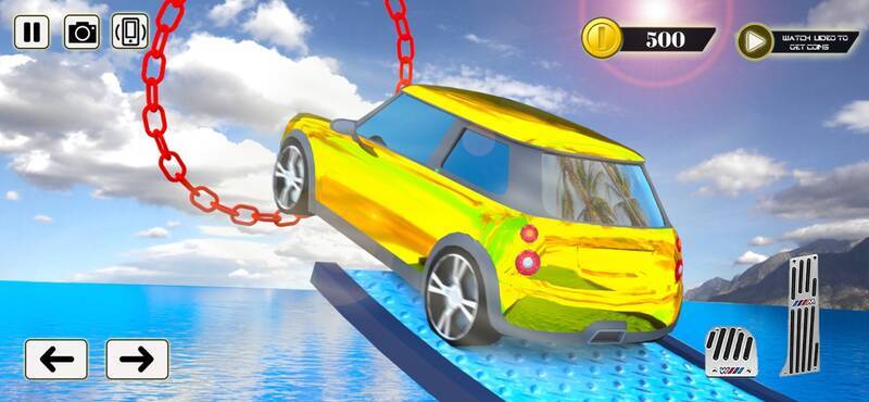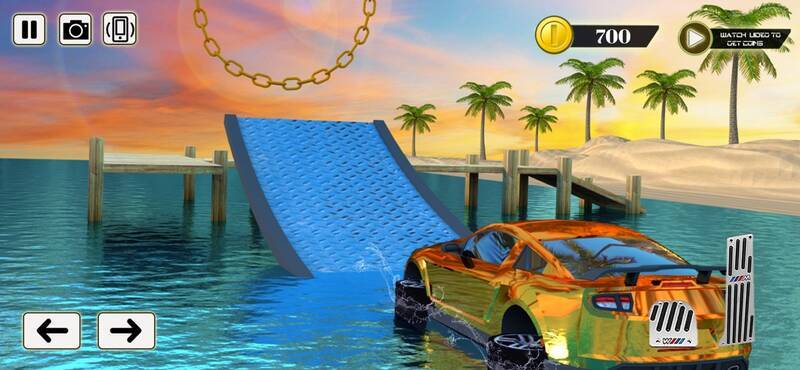 3、在这款夏季水上冲浪游戏中,解锁不同汽车并进行特技表演,操控您的飞车。