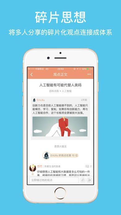 软件亮点在于聚焦碎片思想互动。v1.2.8 版本更新包括重新定位应用价值,聚焦产品经理思想百科;将思想集概念改为思想词条;升级观点内容页结构,提升内容表现力。