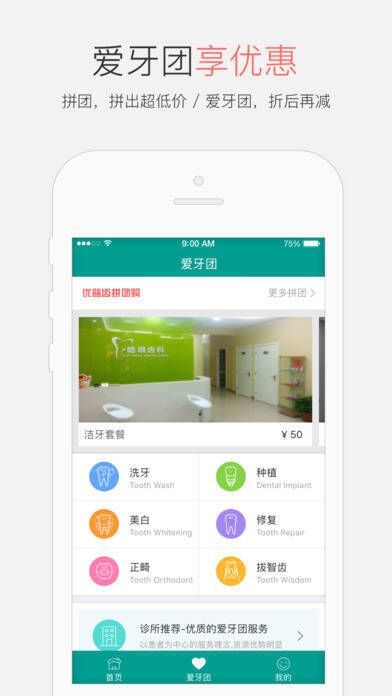 2、爱牙团:以团购形式降低口腔治疗价格,从便捷、安全、实惠等多方面解决患者根本问题。