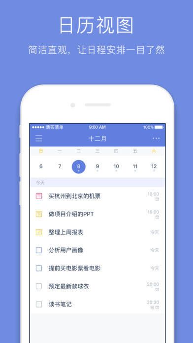 滴答清单是一款轻便的待办事项(Todo)、日程管理(GTD)应用,拥有百万用户。它能助你制定工作计划、设置会议提醒、安排行程规划以及整理购物清单等。它集计划表、备忘录、日程清单、笔记、便签、闹钟、日历、在线协作等多种实用功能于一体,是你高效办公、目标管理和便捷生活的好帮手。