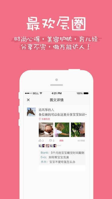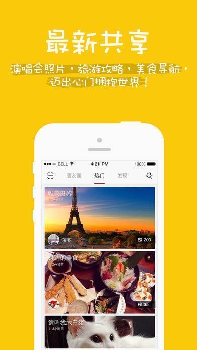 有丰富的分享内容,如时尚心得、美容护肤、育儿经等;能共享演唱会照片等,鼓励拥抱世界;提供新热话题,让你把握资讯;设有快速秀场,让你晒图美美哒。
