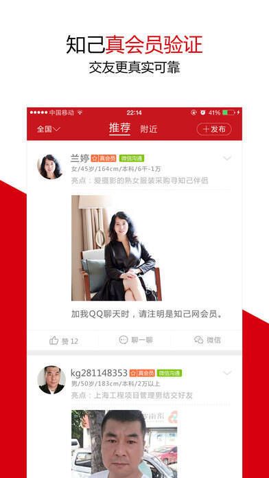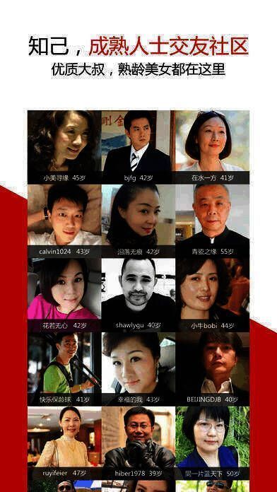 这是知己网开发的两性交友应用,和陌陌、探探等交友网站类似,但更聚焦大龄、成熟人士,适合30岁以上中年单身者交友、同城约会相亲以及离异人士征婚,有众多优质大叔和熟龄美女寻找有缘人。知己网专注异性交友15年,有3800多万注册用户,还引进国外热门交友应用功能,结合中国用户需求。