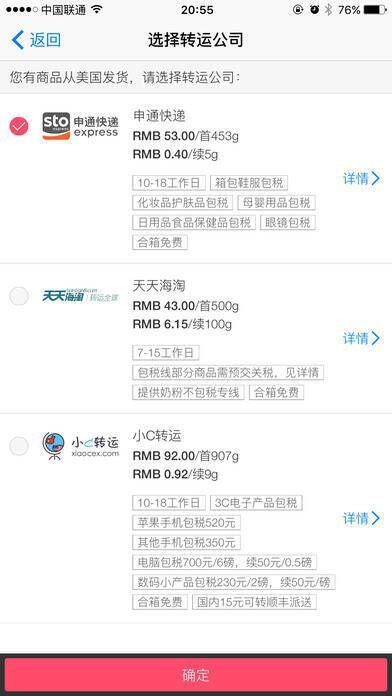5、可将到达转运仓库的商品提交转运,并支付国际运费;