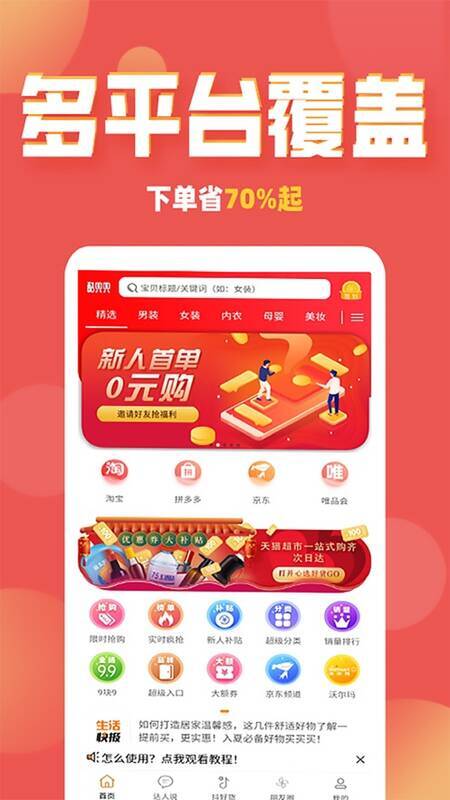 1、基本上每件商品都自带优惠券,可享全网最低价。