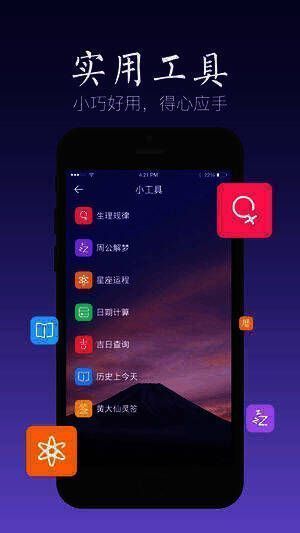 它完美结合了传统的大道至简与现代的高效快捷。老黄历与云储存、天气预报与周公解梦、黄大仙灵签与经期小助手等功能一应俱全,让你万事无忧。还有短时预报,能精准及时地预报你所处位置的天气,实时降雨提醒,是出门、晾衣的必备。