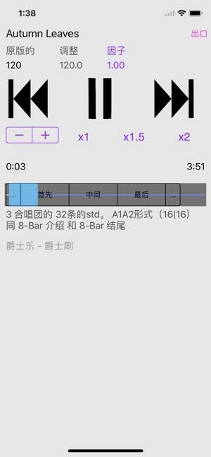 音乐家播放器可精确控制节奏,大按钮设计,能显示曲式和节奏,还有部分明智的进度跟踪。