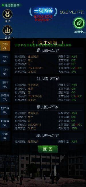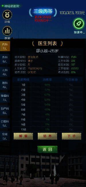 1. 游戏里所有医生通过招聘获取,医生学历各不相同,学历会影响医生通过临床职称考试的几率。
