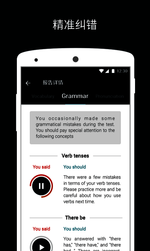 3、运用硅谷最新语音评估技术,实时为口语打分、反馈正误,帮助纠正发音,如同拥有贴身英语私教;
