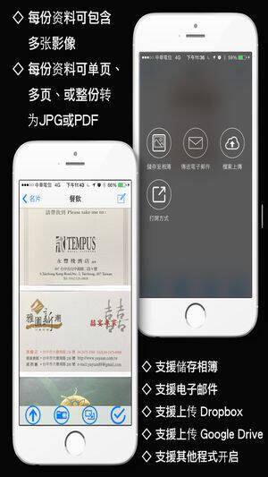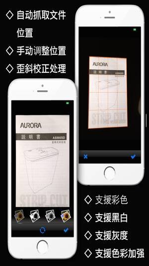 QuickScanPro 支持自动与手动微调文件位置,可将不规则四边形文件校正为四方形。拍好的文件具备影像文字辨识功能,能识别繁体中文、简体中文、英文、日文、韩文等多国文字,且识别后的文字可自行校对修正。文件还能通过电子邮件寄送或在其他应用中打开。