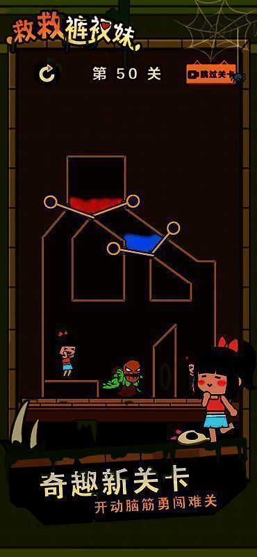《救救裤衩妹》是一款经典的密室闯关游戏,具有丰富多样的玩法。游戏设有大量关卡,每个关卡都有独特的问题和不同的威胁,像熔岩、怪物、石头等。玩家需凭借手指操作解决关卡难题,保护女孩并顺利通关。