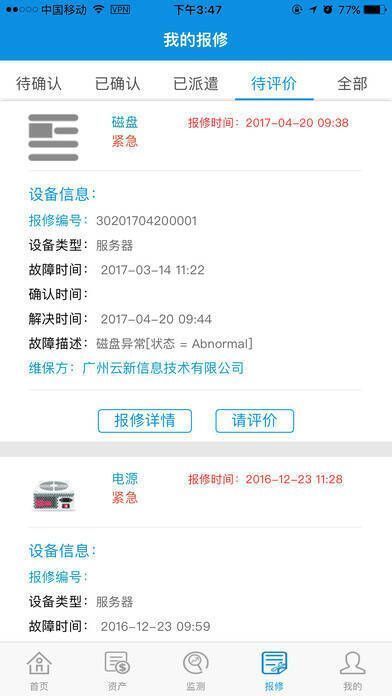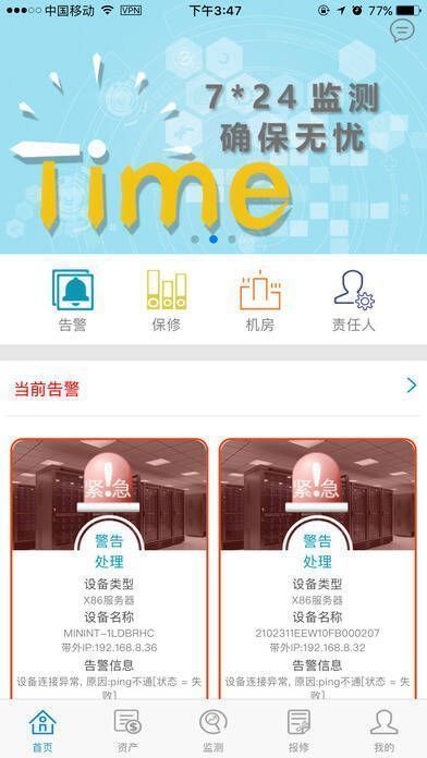 1、通过web及App应用实现设备部件的集中监控与告警、在线维保、备件资源库以及工程师租赁服务,为企业提供跨厂商、跨硬件平台的全方位监测、资产管理和设备维修跟踪服务。
